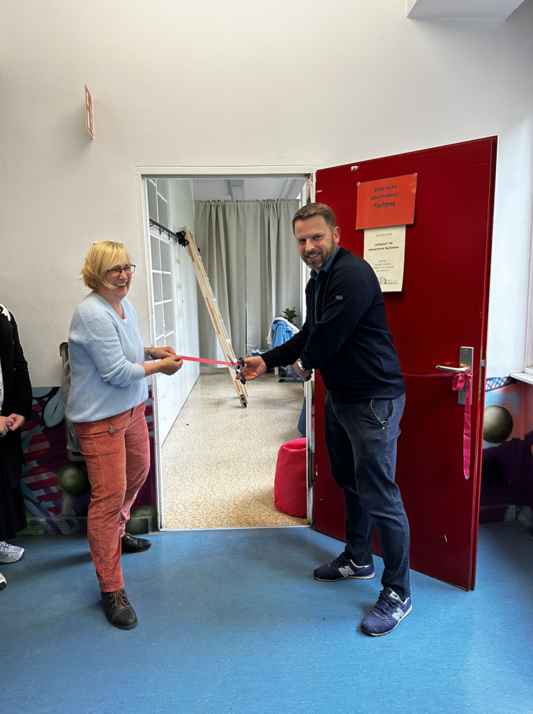 Feierliche Eröffnung der Bibliothek durch Frau Kauert (links) und Herrn Splitt (rechts)